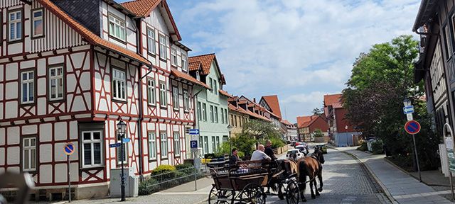 Jest nim oczywiście Wernigerode- zwiedzanie rozpoczniemy od wycieczki ekologiczną kolejką ,podjedziemy do imponującego zamku wybudowanego w stylu niemieckiego historyzmu a górującego nad miastem. Oszałamiające widoki gwarantowane. Następnie przejazd uliczkami z wielobarwnymi szachulcowymi domami w kierunku rynku z fontanną i szachulcowym rzecz jasna ratuszem. Wrażenie zrobi także najmniejszy dom w mieście-Kleinste Haus, gdzie zlokalizowano miniaturowe muzeum/wymiary budynku 3m.wys, 4.20 m. szer.