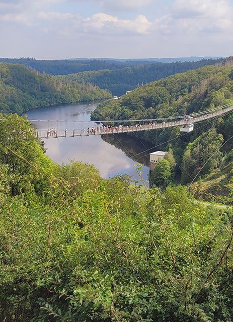 Dziś czas na kolejne. Na początek zapraszam na wyjątkowy most Titan RT. Jest to najdłuższy wiszący most linowy w Niemczech/458.5 m/,a przebiega nad zbiornikiem wodnym i częścią zapory.