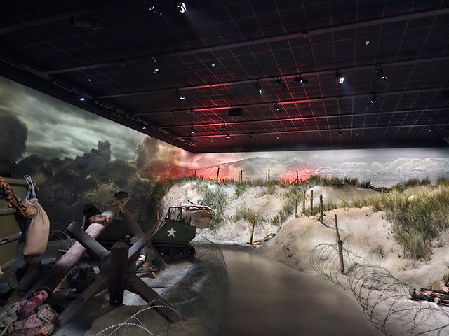 Najważniejszym punktem jest D-DEX — immersyjna wystawa przenosząca na plażę Omaha podczas lądowania aliantów. Realistyczna scenografia, dźwięki i projekcje tworzą mocne, głęboko zapadające doświadczenie.